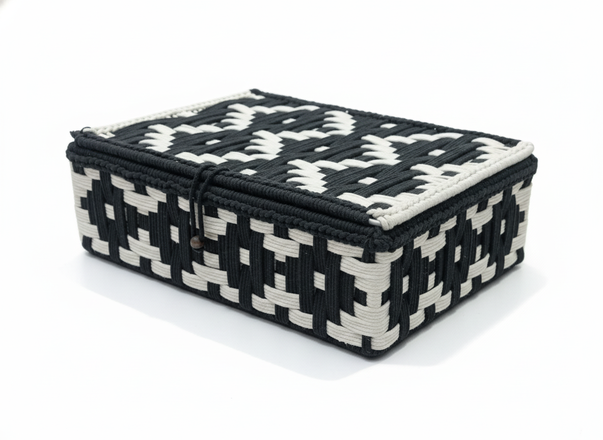 Add a touch of boho elegance to your space with this handcrafted Black Macrame Organizer Basket. Perfectly combining style and functionality, it’s ideal for storing toys, blankets, magazines, or everyday essentials. Made from durable cotton rope, the intricate macrame design gives it a chic, textured look that complements any decor—whether modern, minimalist, or bohemian. Lightweight yet sturdy, this basket is easy to move around and keeps your space tidy while adding a decorative accent.